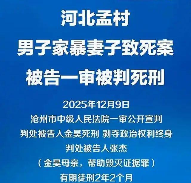 1.死刑下的羞辱比电影还讽刺。 2025年12月9日,沧州中院法庭的空气仿佛凝固了。当法官宣读时,“被告人金某犯故意杀人罪,判处死刑。” 26岁的金突然倒下了。如果非法警察及时制止,他一定会瘫倒在冰冷的地板上。谁能想到,这个在庭审时面色苍白、浑身颤抖的男子,曾经是暴力杀害妻子刘某某的恶魔。更奇怪的是,他的手腕上还戴着耀眼的金手镯,裤子下面却藏着知道死刑可能到来后不节制的耻辱——那个曾经拳打邻居时眼神凶狠的罪犯,终于在床胃面前露出了怯懦。 2、详细剖析:从骄傲到堕落,魔鬼的48小时震撼。金氏的精神崩溃早在判决前就已注定,每一个细节都充满了f“自身后果”: 1.死刑警告:骄傲被粉碎成渣。刘的哥哥在直播中透露,当金通过律师得知“证据链完整,可以判处死刑”时,他彻底崩溃了。在看守所里,他晚上不敢睁眼睡觉,一听到脚步声就浑身发抖。他那句傲慢的口头禅“打我老婆算不了什么”,现在已经变成了反复出现的“我不想死”。 2、庭审中的法庭:金链子遮不住的恐惧 庭审当天,金某故意戴着金手镯来撑场,苍白的脸色和颤抖的嘴唇都背叛了他。当法官宣读判决时,他的手指紧握着被告席的栏杆,直到“死刑”二字落下,他紧绷的神经被彻底切断。在被押解出庭审时,他不断地说“我犯了一个错误”,但迟到的认罪甚至没有引起法庭的注意。受害人家属的目光。 3、没人敢帮忙:在一起备受瞩目的律师集体驳回案件后,金利用自己的关系找律师为自己辩护,却被至少五家律师事务所拒绝。一名律师斩钉截铁地说:“我们不会受理这样一个破坏男人道德底线的案件,他杀害了日夜陪伴的妻子,并销毁证据来掩盖真相。”最终,他无奈面对无人防守的默特,面对证据确凿的指控却束手无策。 3、深挖案件:比谋杀案更令人心寒的是对家人的保护。在这场悲剧中,靳母张也扮演了一个丑陋的角色,她的行为进一步伤害了公众的感情:1、销毁证据的帮凶:亲手销毁了女儿生存的证据。案发后,张某立即清理案发现场,销毁血迹衣服,试图掩盖“国内暴力”。他或许没有想到,自己的行为触犯了刑法第310条——根据最高人民法院司法解释,杀人案件中协助销毁证据属于包庇行为,“情节严重”,可判处三年以上有期徒刑。 2、量刑争议:两年零两个月是否太轻?最终,张某仅被判处两年零两个月有期徒刑,引发各界质疑。网络法律专家解释说:“可能是因为他没有直接参与暴力行为并招供,但从干扰调查的后果来看,判刑确实很轻。”网友的愤怒更直接:“帮助你的儿子销毁证据和痕迹,这等于间接谋杀。”这个处罚太轻了!” 3、孩子的命运:恶魔之家不配养育孩子。目前,刘某3岁的儿子还在监狱里。出自金家亲戚之手。刘某的哥哥明确表示要争取抚养权:“凶手已经受到惩罚,同案犯已经定罪,这怎么能教孩子是我们家的人呢?我们需要给孩子一个干净的成长环境。”律师指出,金家参与销毁证据将是争夺抚养权的主要不良证据。 4、法律利剑:婚姻从来都不是“免死金牌”。本案的判决打破了一个危险的误区:长期以来,一些人认为“因婚恋纠纷引发的犯罪,可以由中间人从轻处罚”。信号——家庭暴力造成的死亡并不意味着“家庭问题”。最高法院强调,对于手段残忍的家庭犯罪,应当像普通谋杀案件一样对待。金被判处死刑,彻底粉碎了“婚姻是避风港”的幻想更引人注目的是案件中的“可疑死亡证明”:刘某最初被医院诊断为“心肌梗塞”,但法医判定是“脑损伤死亡”。目前尚不清楚这份假证明是否有利益关系。“下吧,不要让任何人成为帮凶。”5、事实:容忍家庭暴力是给魔鬼杀人的机会,但刘某的数据显示,我国有24.7%的已婚妇女遭受过家庭暴力,其中81%的人因为“怕羞”和“为了孩子”而选择忍受,在这种情况下,刘某某的父母已经知道女儿被打,但由于“劝和不离”的旧观念没有及时干预,刘某某本人也担心失去孩子的抚养权。原谅金的暴行,并最终付出了生命的代价。正如央视一条评论所说:“家暴第一次发生,就应该是婚姻的终结,任何让步都会让加害者更加嚣张。六、终极拷问:如何阻止下一个‘刘某某’?金某倒在法庭的那一刻,是正义的胜利,但也是悲剧的结束。刘某某的父母被判‘死刑’,却永远失去了儿子。女人;3岁的孩子,要面对“凶手父亲”的耻辱。遇到家庭暴力,尽快报警,申请人身保护令;家属不要想当然,“和事佬”可以及时拯救受害人,法律可以严惩魔鬼,但不能代替失去的生命,对家庭暴力的零容忍才是最好的预防。